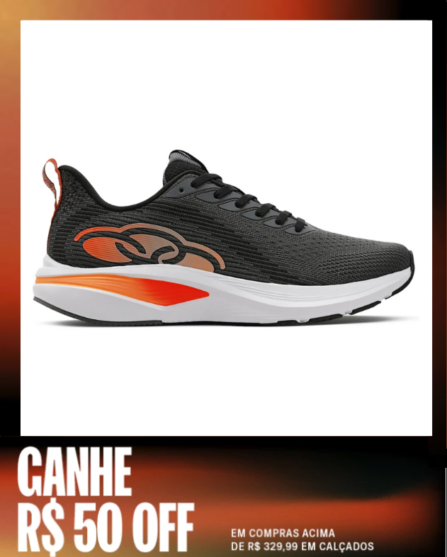 IMPERDÍVEL! R$50,00 OFF em compras acima de R$329,99 em calçados + 15% OFF da parceria + 10% OFF pagando no pix + frete grátis.