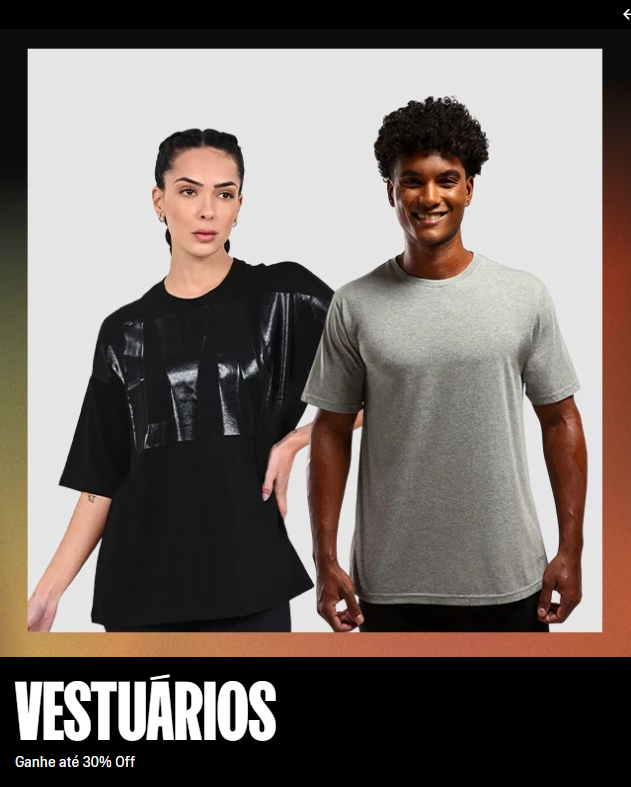 IMPERDÍVEL! Vestuário com até 30% + 15% OFF da parceria + 10% OFF pagando no pix + frete grátis.